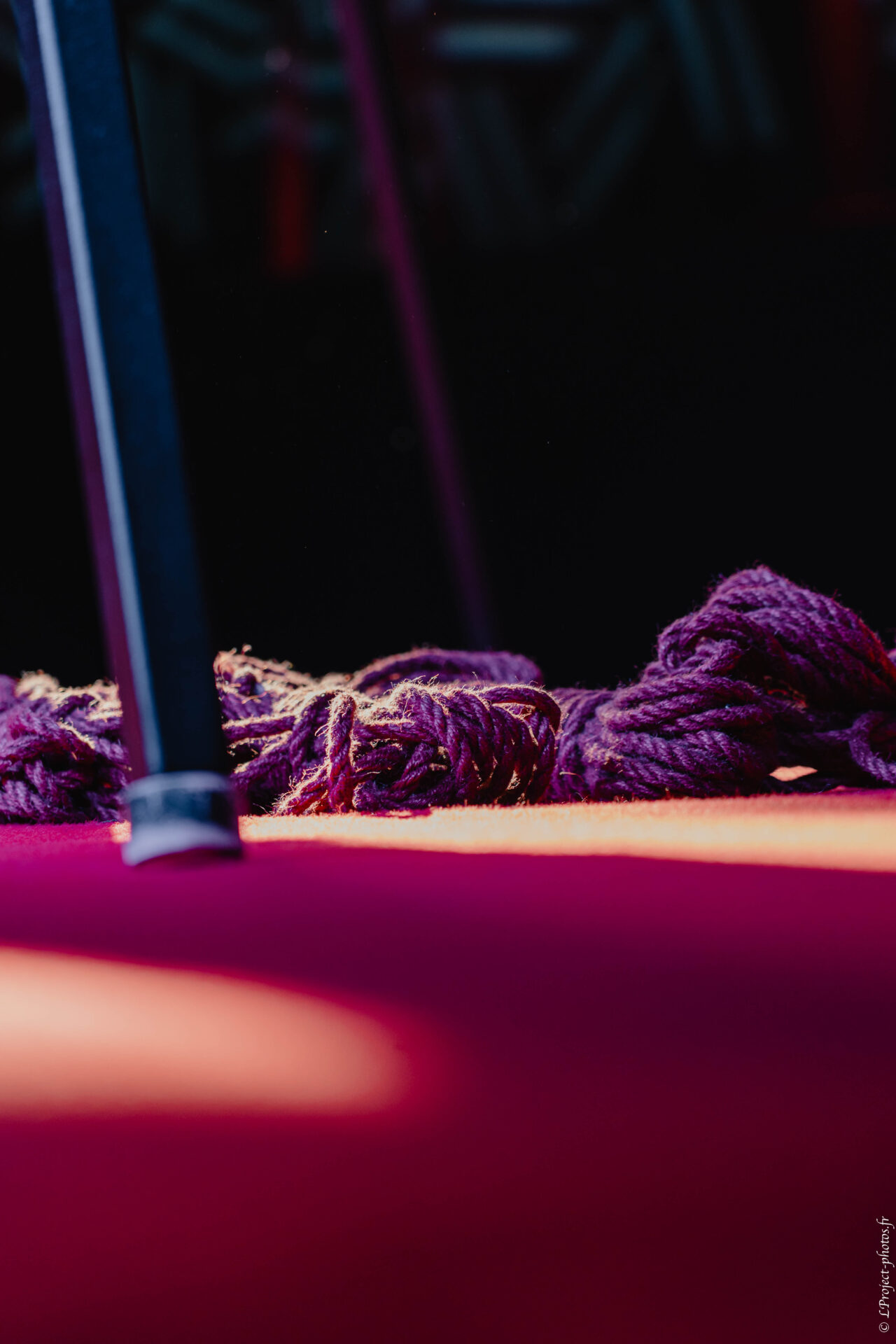 La lumière, la texture des cordes et la gestuelle deviennent les instruments d’une écriture visuelle, où se mêlent vulnérabilité, force et poésie.